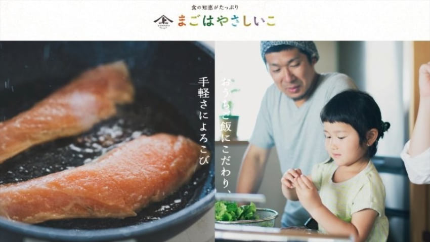 「まごは(わ)やさしい」とは、「まめ」「ごま」「わかめ」「やさい」「さかな」「しいたけ」「いも」という、日本の伝統食材の頭文字をとったもの。これに、同社の主力商品である「糀」を用いた発酵食品を加えているという。