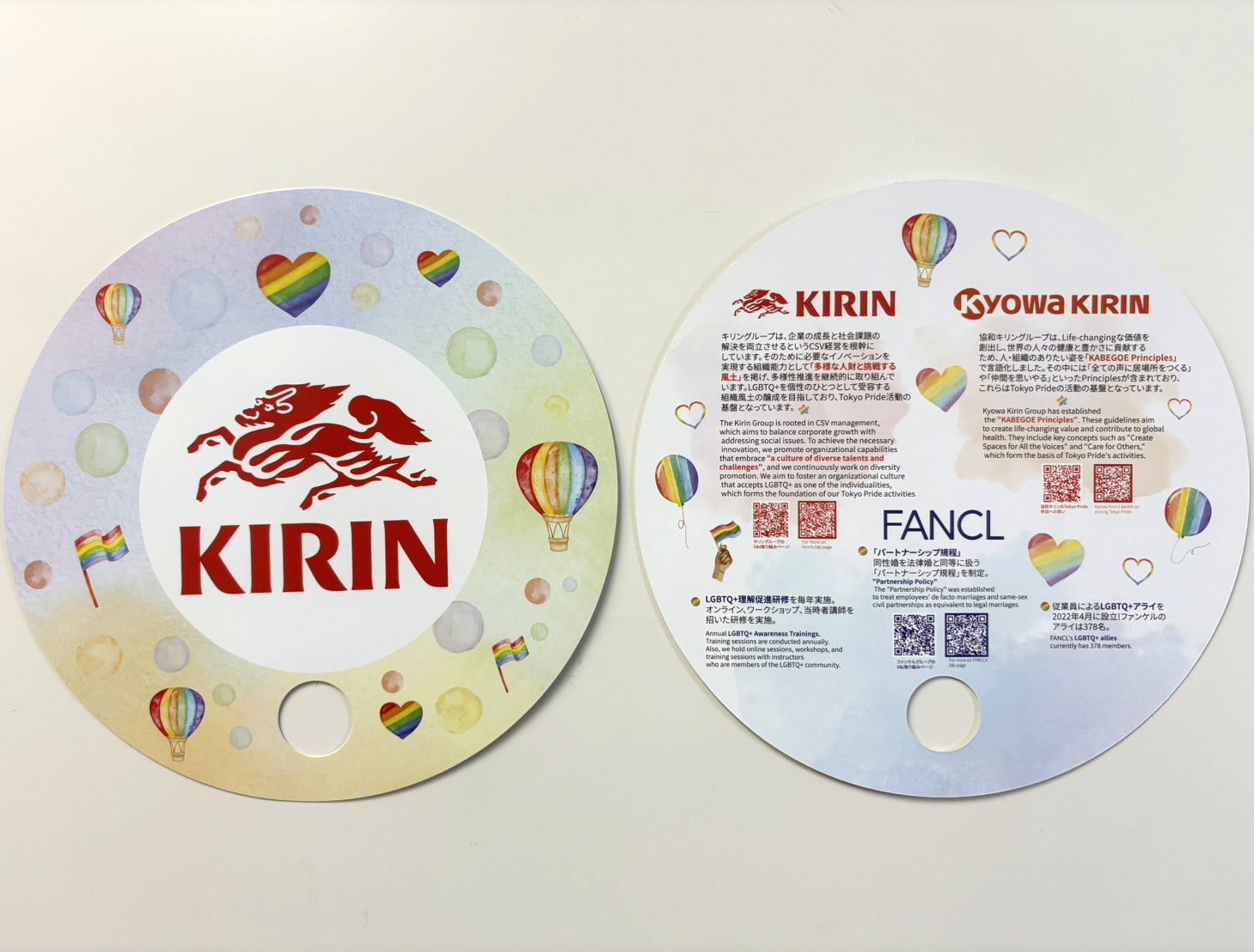 ▲キリングループがイベント当日に配布するうちわキリングループは「持続可能な社会の実現」と「ダイバーシティ&インクルージョン(DE&I)」推進の理念に基づき、合同での協賛を決定した。SDGsの達成に向けた企業行動が求められる中、ジェンダー平等や包摂社会の実現に向けた、具体的な取り組みが重要視されている。